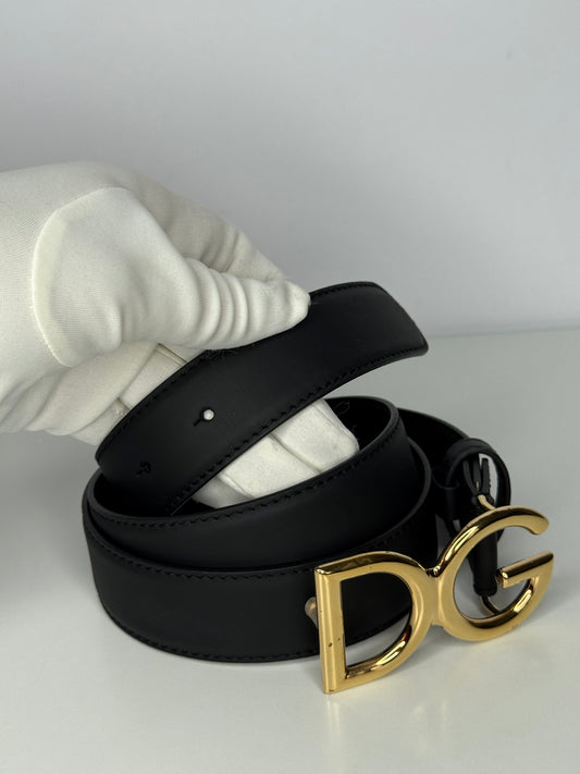 Dolce Gabbana DG Logo Black Calfskin Belt