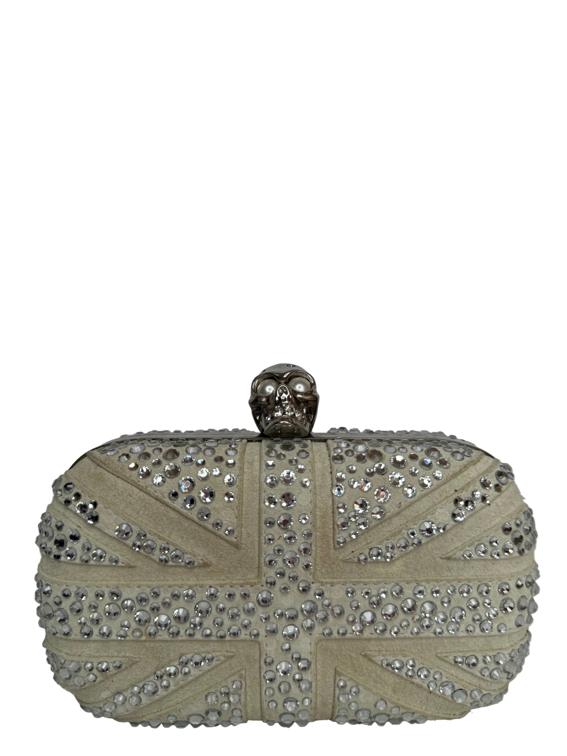 Alexander McQueen Off White Suede Studded Britannia Skull Box Clutch