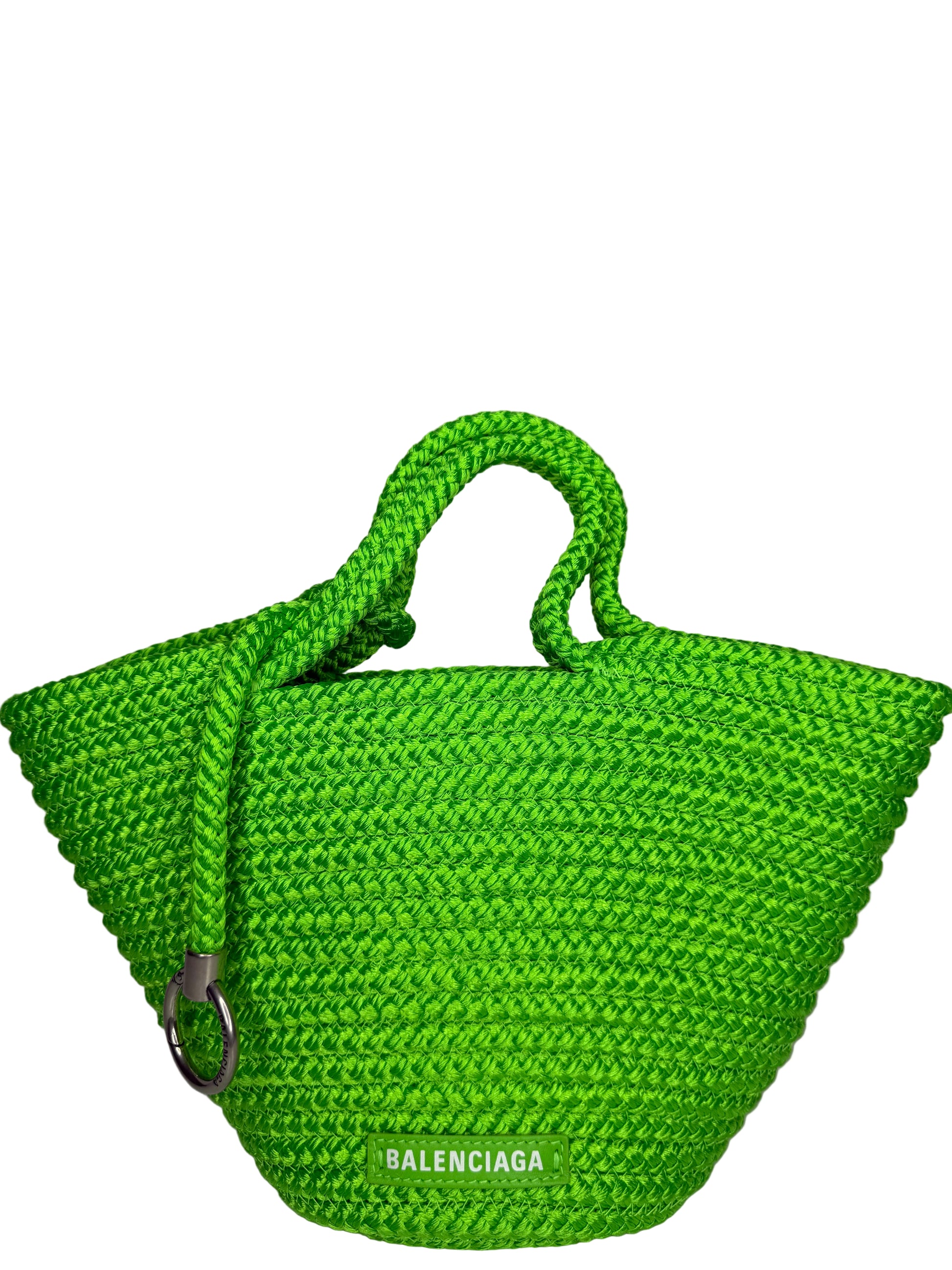 The Balenciaga Small Ibiza Woven Basket Bag is crafted from green woven nylon, featuring a compact, casual design with a relaxed yet stylish vibe. Perfect for effortless, chic everyday wear.