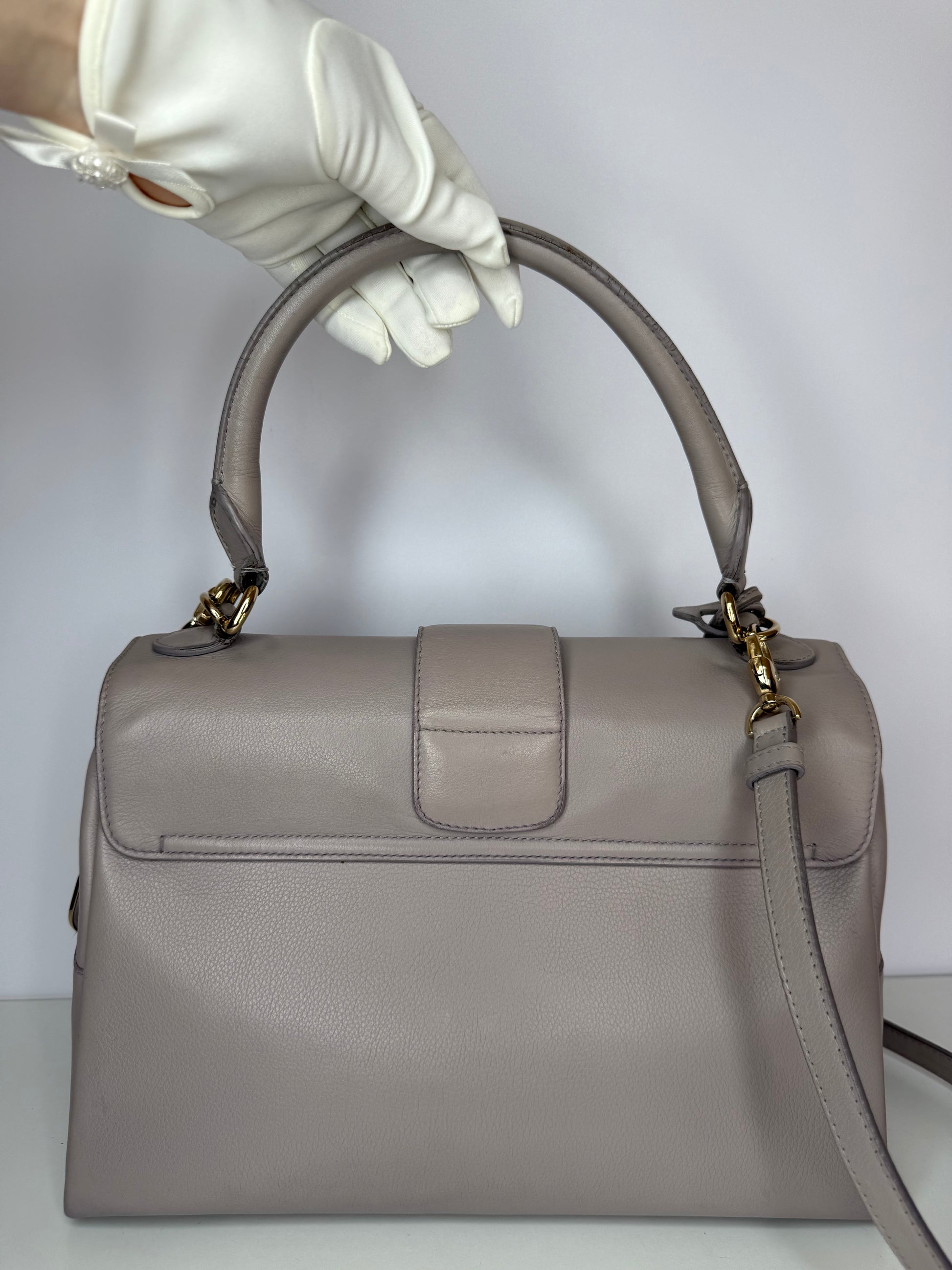 Christian Dior Grey Leather New Lock Top Handle Bag