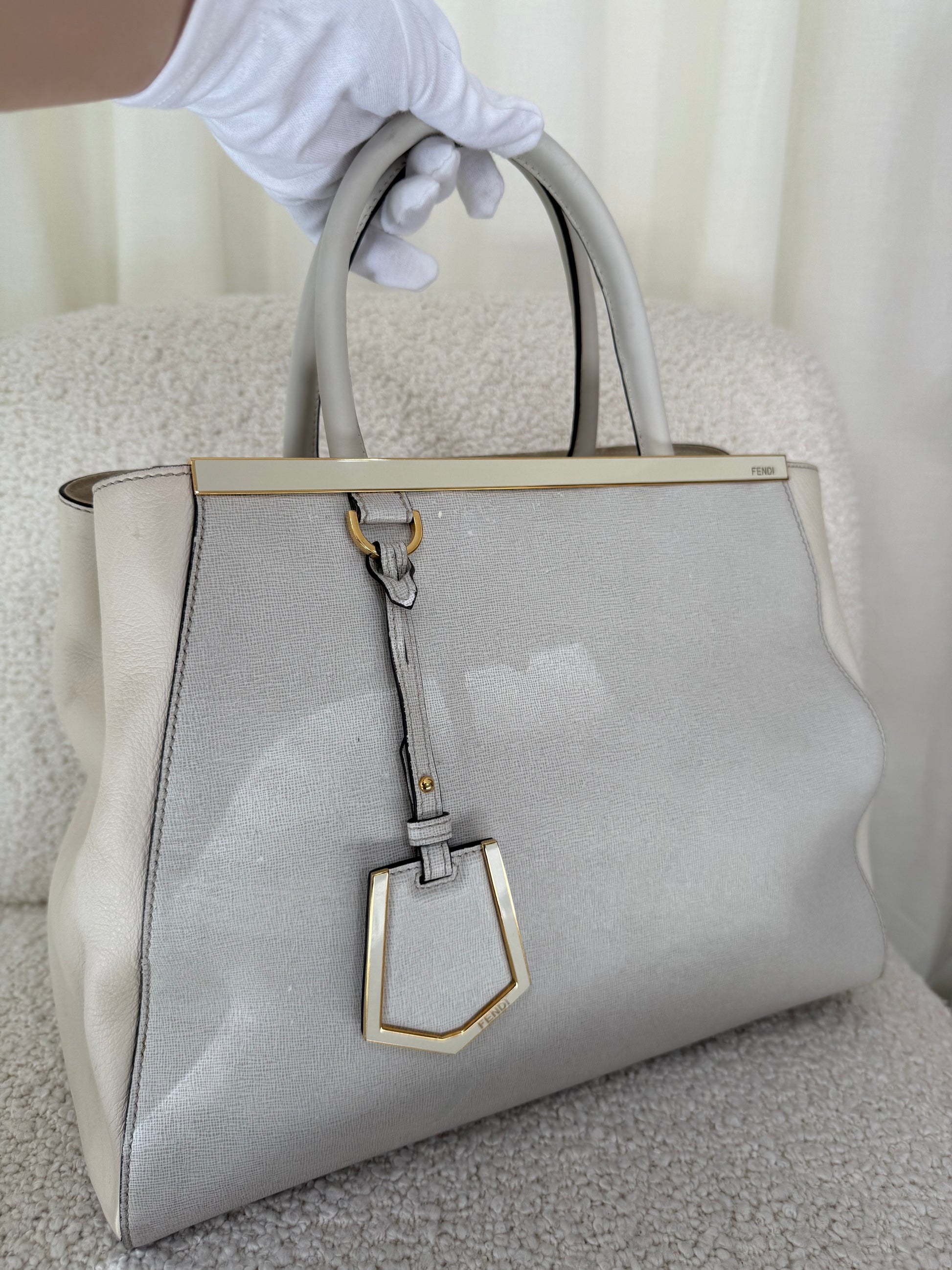 Fendi Grey/Beige Leather Medium 2Jours Tote Bag