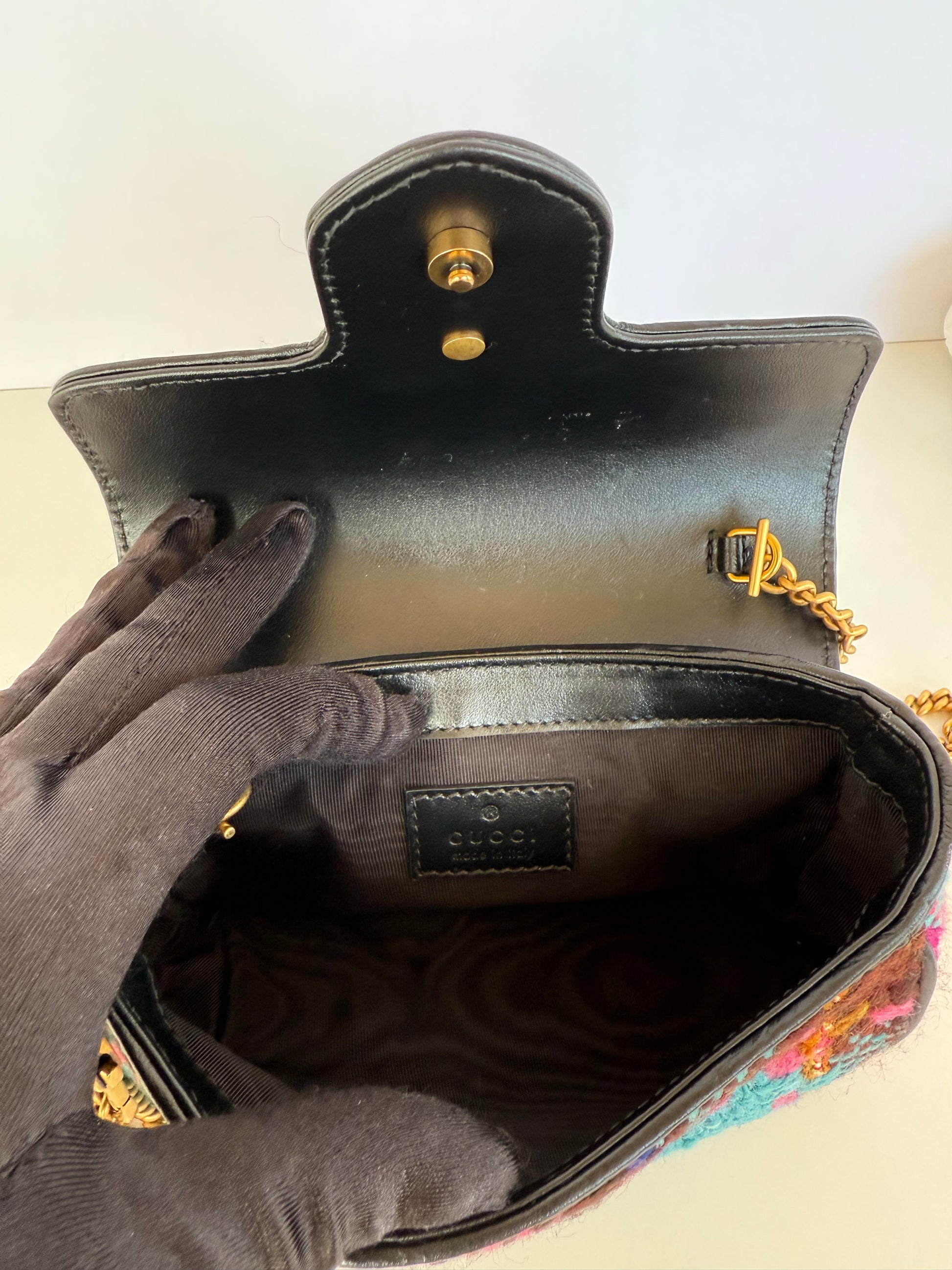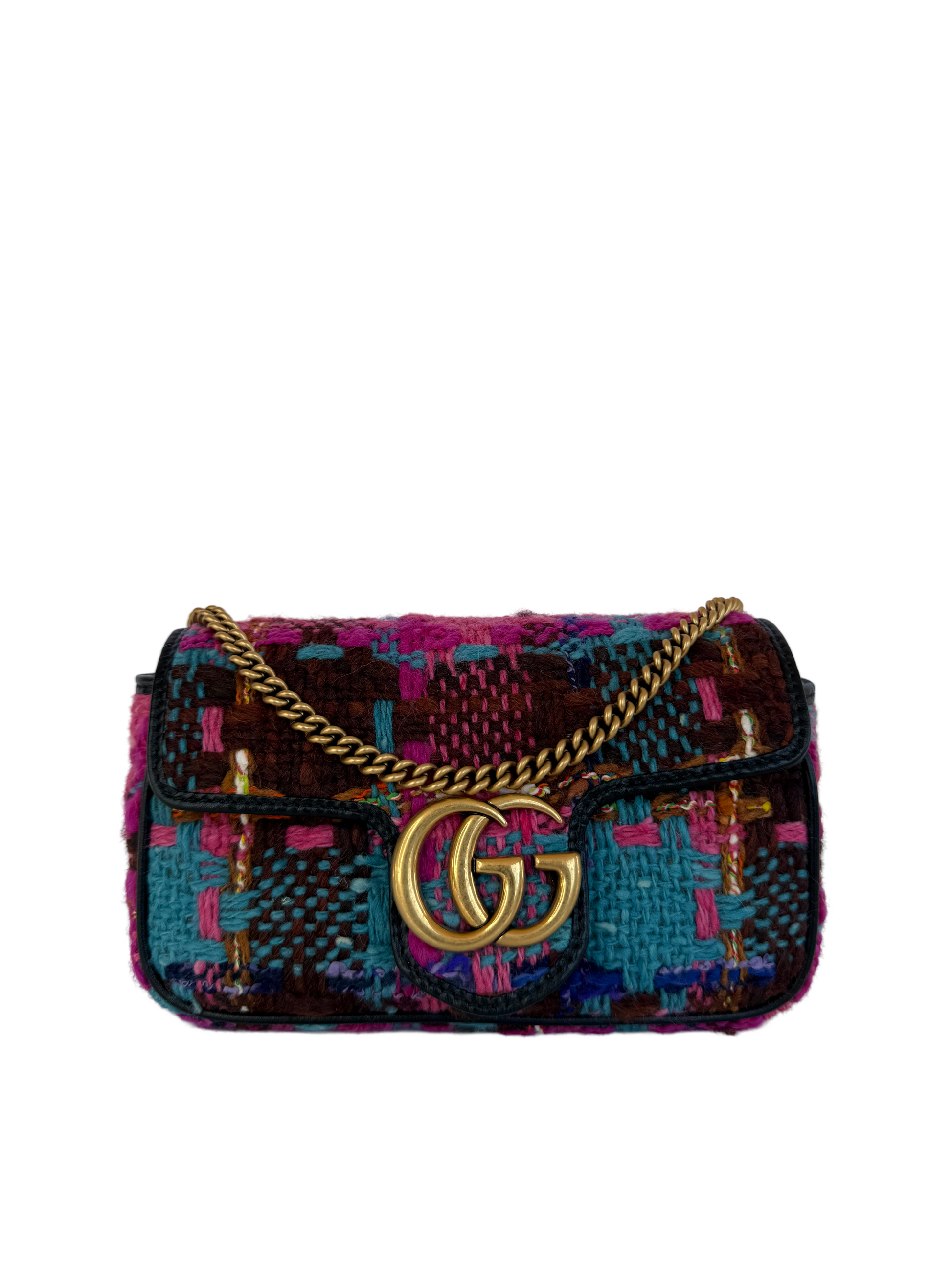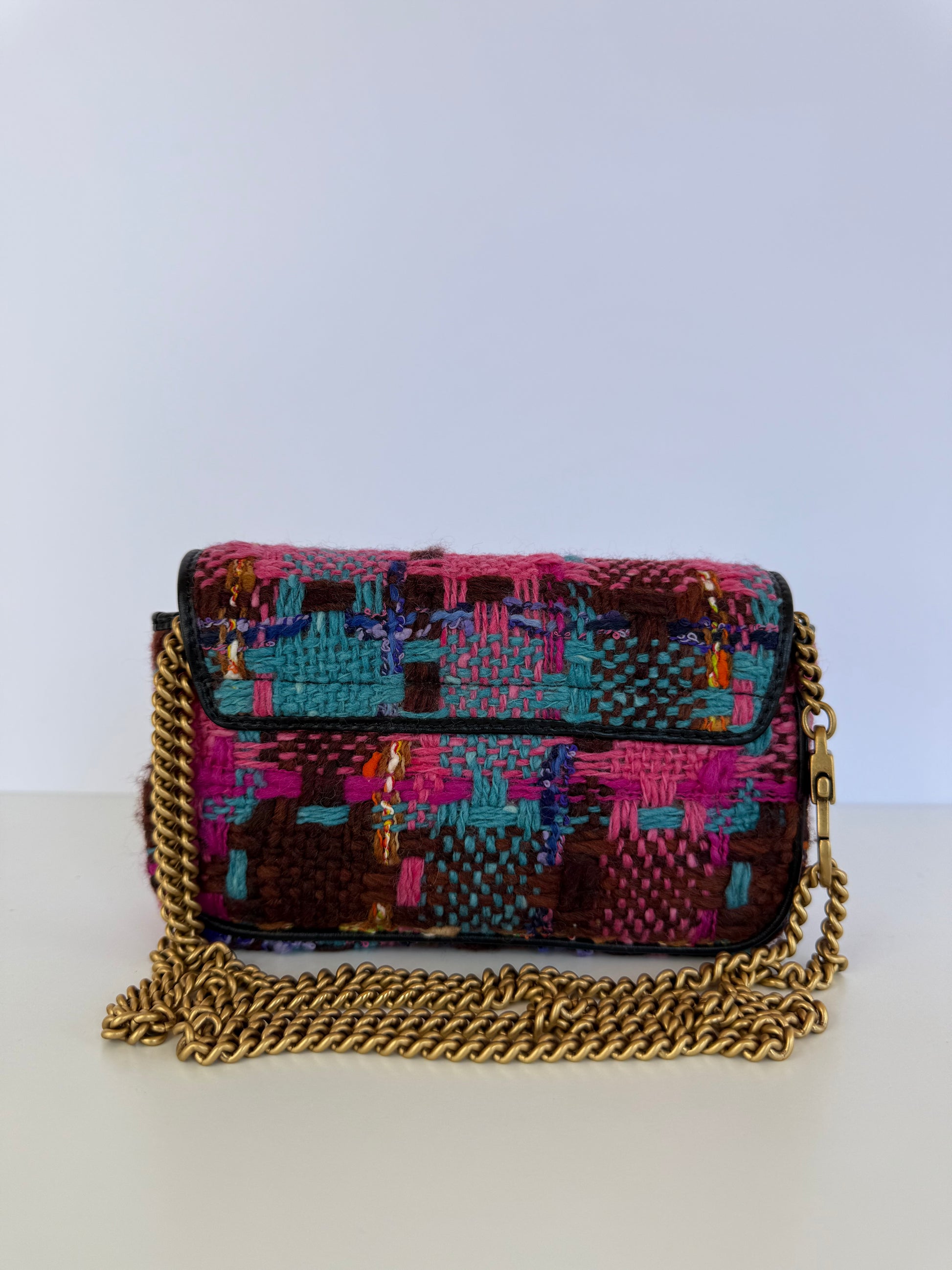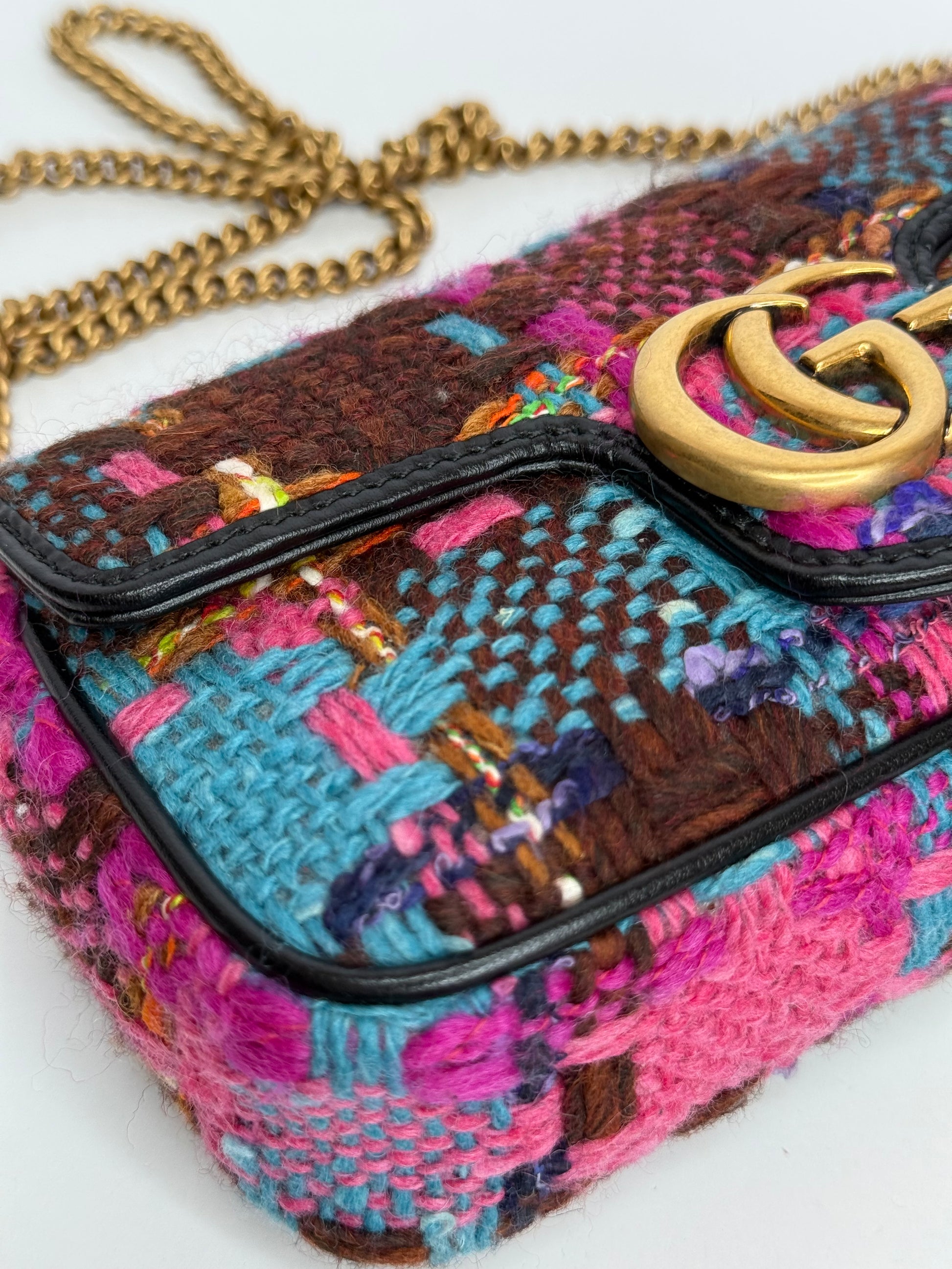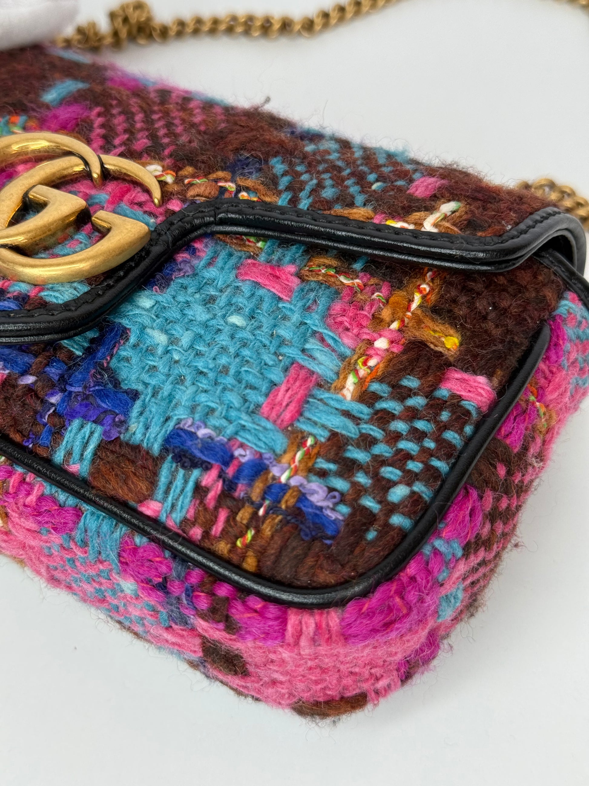 Gucci GG Marmont Super Mini Tweed Calfskin Spicy Check Multicolor