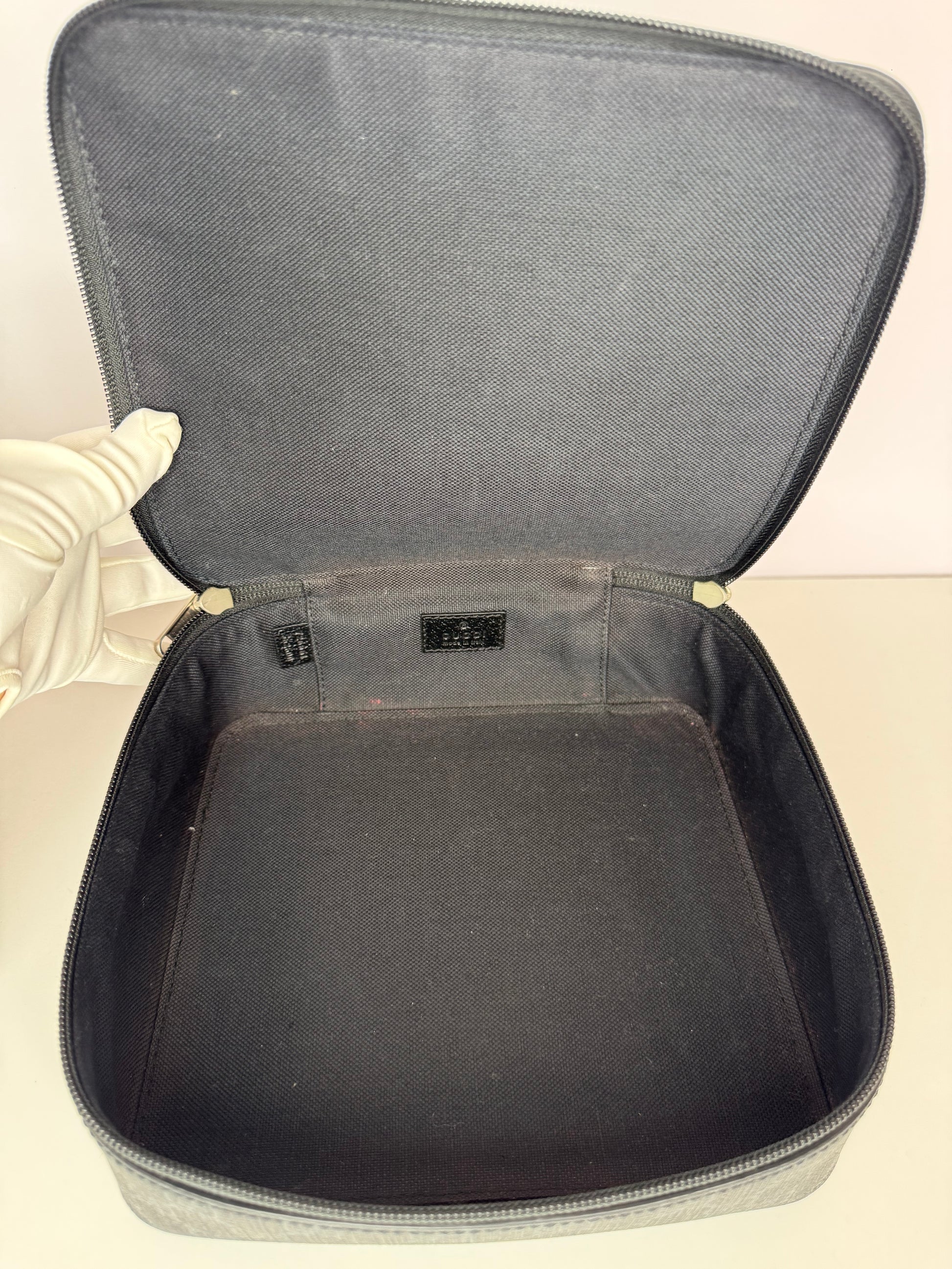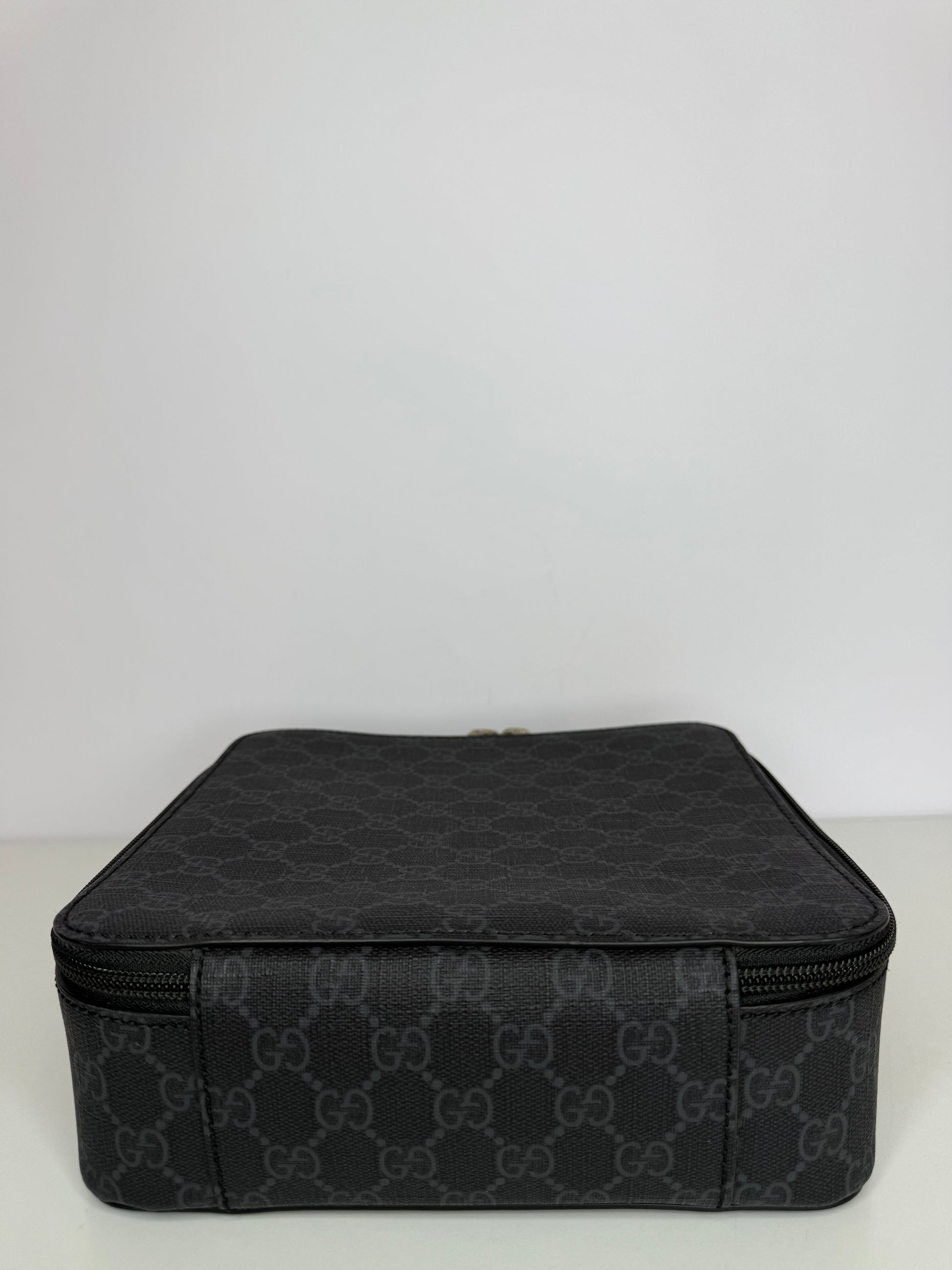 Gucci GG Supreme Packing Cube Pouch in signature coated canvas, featuring the iconic GG pattern and zip closure. A practical and stylish accessory for organizing travel essentials.