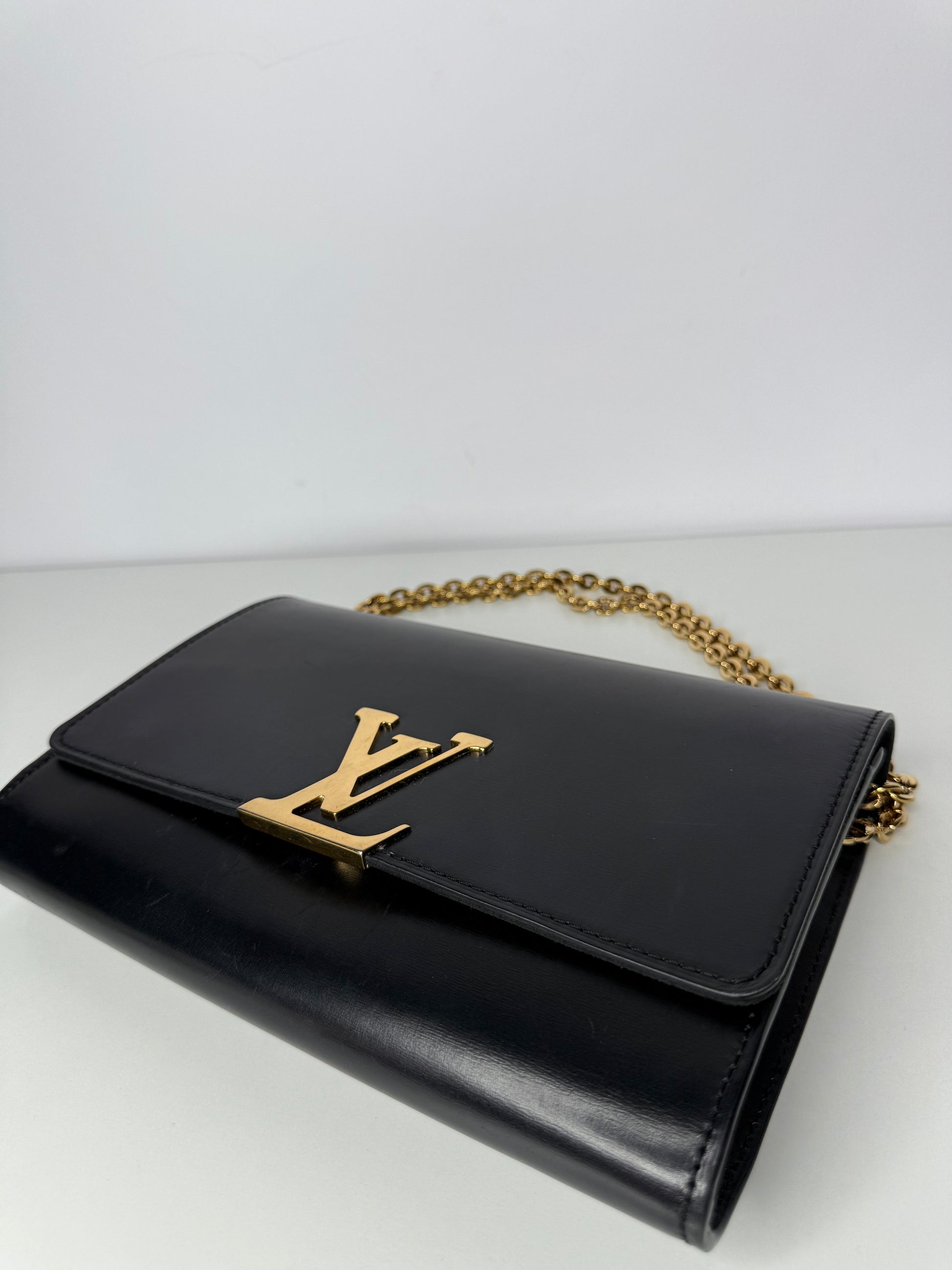 Louis Vuitton Louise Black Calfskin Chain Clutch