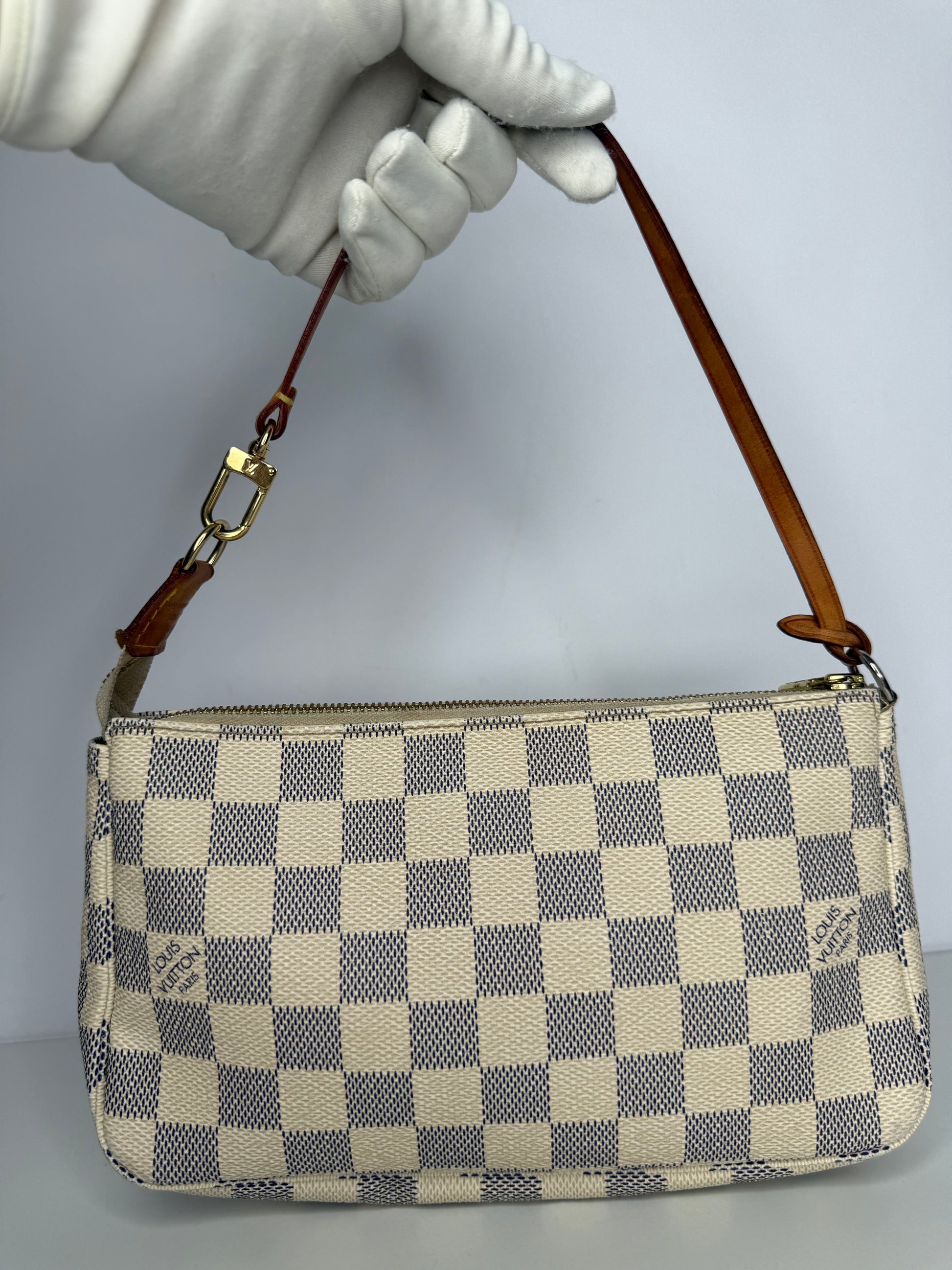 Crafted in Damier Azur canvas, this Pochette Accessories features a compact design with a top zip closure, versatile interior, and a polished, timeless Louis Vuitton style.