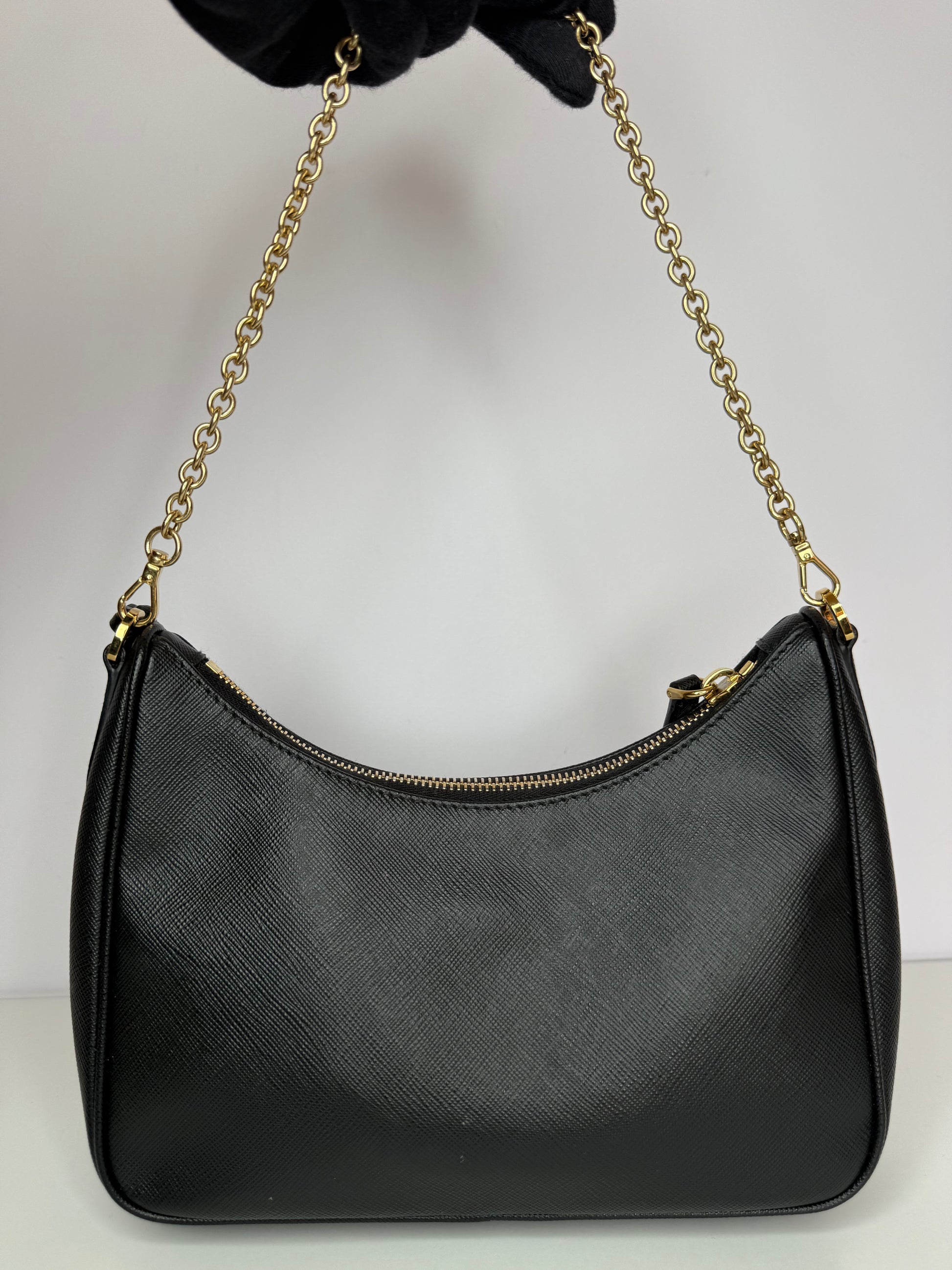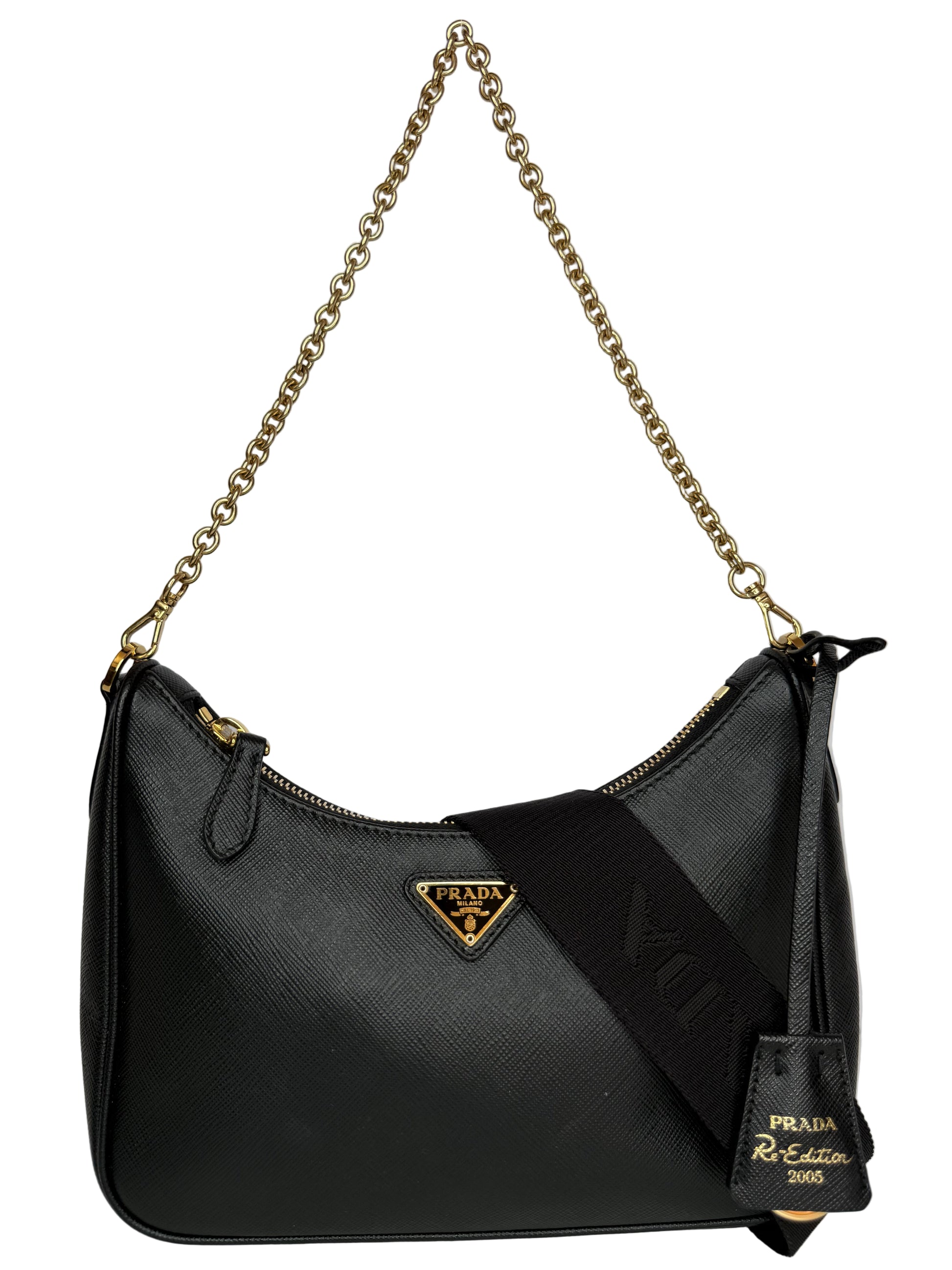 Prada Re-Edition 2005 Black Saffiano Leather Shoulder Bag – Timeless and structured, crafted in black saffiano leather with a sleek silhouette and shoulder strap for elegant, everyday wear.